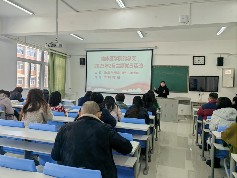 为全面学习贯彻党的二十大会议精神,深刻领会和把握现代职业教育建设改革的新要求,2月19日,临床医学院党总支开展了“凝心聚力担使命 携手共进促发展”主题党日活动。活动由党总支书记刘利主持,党总支党员参加了活动。