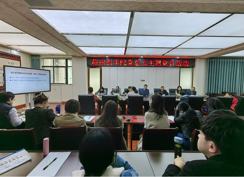 为深入学习贯彻2023年全国两会精神,切实增强党员的责任感和使命感,3月29日,临床医学院党总支开展了“学两会精神 强使命担当”主题党日活动;全体党员参加活动;活动由党总支书记刘利主持。