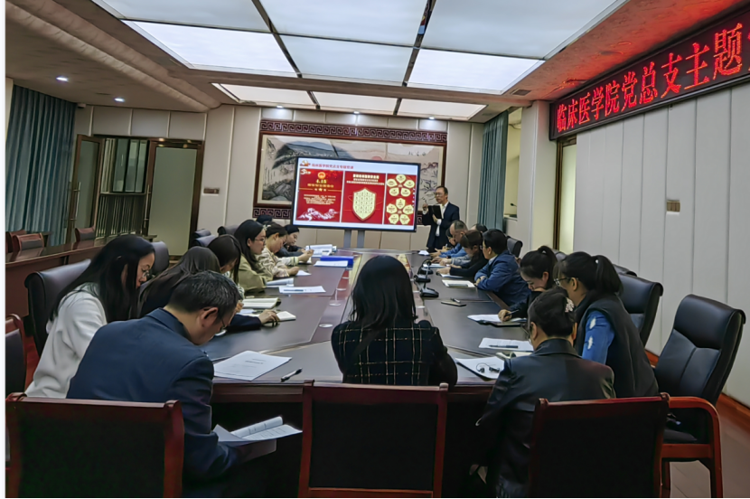 为深入学习贯彻习近平新时代中国特色社会主义思想,教育引导广大党员、干部锤炼政治品格,增强纪律意识、规矩意识和安全意识,4月24日,临床医学院党总支组织开展了“锤炼品格强忠诚 廉洁奉公树新风”主题党日活动;活动由党总支书记刘利主持;党委委员、副校长梁晓峰作为党员和联系校领导双重身份参加了活动。