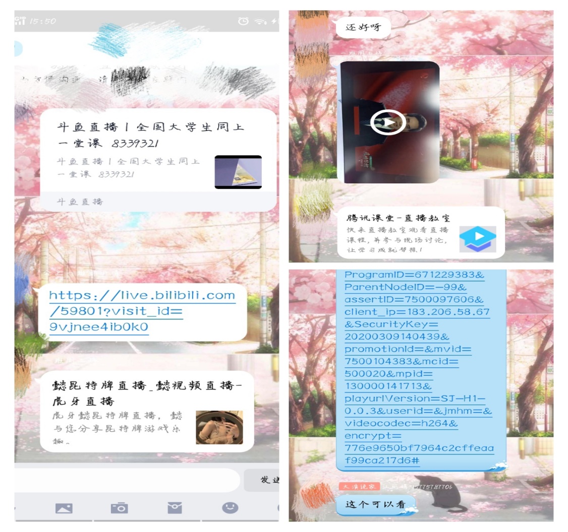 团结一致,办法总比困难多。这次的思政大课是全国性的,参与人数众多,很多同学到点都都没能进入直播平台听课,但是,直播的卡顿,挡不住临床医学院学子们的热忱。看不了人民网的直播课,就去其他平台找主播们的转载直播,看到直播的同学开设腾讯课堂,为没有看到直播的同学转载直播。