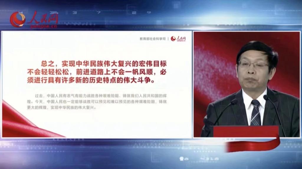 自新冠肺炎爆发以来,面对与日俱增的患病人数,中国人民万众一心打响肺炎防控新战役。教育部社会科学司与人民网联合组织“全国大学生同上一堂疫情防控思政大课”于3月9日14:30至16:00正式拉开帷幕。这次激动人心的全国大学生课堂,特别邀请了来自清华大学马克思主义学院院长艾四林教授、中国人民大学习近平新时代中国特色社会主义思想研究院院长秦宣教授、北京师范大学马克思主义学院王炳林教授、中央财经大学马克思主义学院院长冯秀军教授四位讲授。