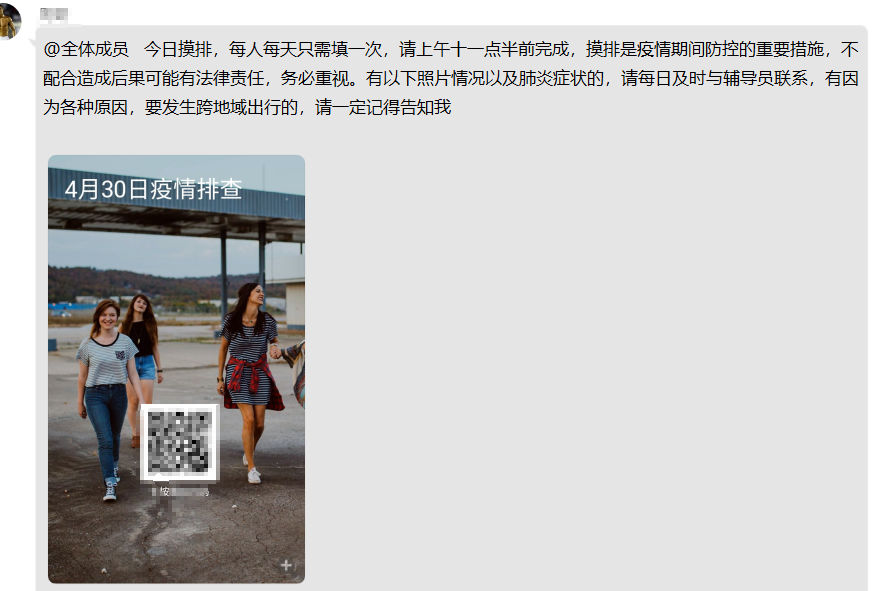此外,我校响应教育部号召,全体师生积极配合,在开校前做好疫情摸排工作。辅导员每天通过QQ群发送疫情排查二维码,学生扫描二维码,并通过自身身体情况如实进行填写。不仅如此,为抓细抓实学校疫情防控工作,切实提高学校联防联控能力,全面保障复学后师生的健康安全,4月29日,我校举行了疫情防控开学实战演练,学校疫情防控工作领导小组、各专项工作组相关人员及各学院、相关职能部门百余人参加演练,在食堂、宿舍、教学楼等多处人群集中处进行演练。