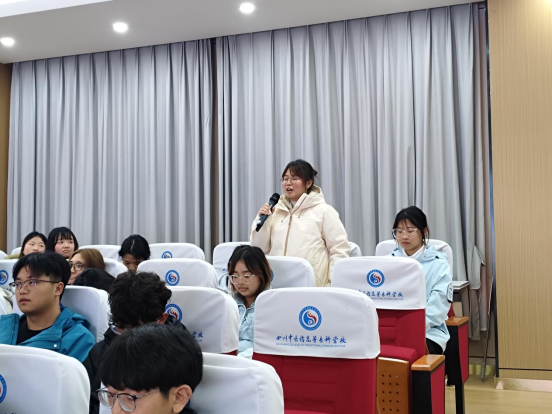 在互动问答环节,同学们围绕实习选择、技能提升、岗位要求、面试准备和职业证书考取等问题踊跃提问。两位校友结合行业实际和个人经历逐一解答,现场气氛热烈。通过深入交流,同学们进一步增强了对老年营养、临床营养等方向的关注与兴趣,也更加明确了专业学习与职业发展的衔接路径。