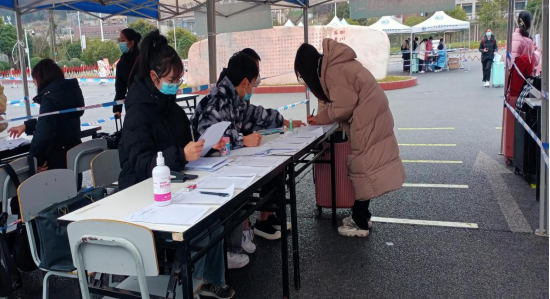 学生返校时,辅导员老师们认真审核返校疫情防控资料,严格落实疫情防控要求。学院团学会干部、志愿者同学们也协助老师们做好收集整理资料、引导同学们到指定地点接种新冠疫苗加强针等工作。学院党总支书记刘利、院长古仕明、副院长刘玲也到现场检查指导返校工作,看望返校同学。