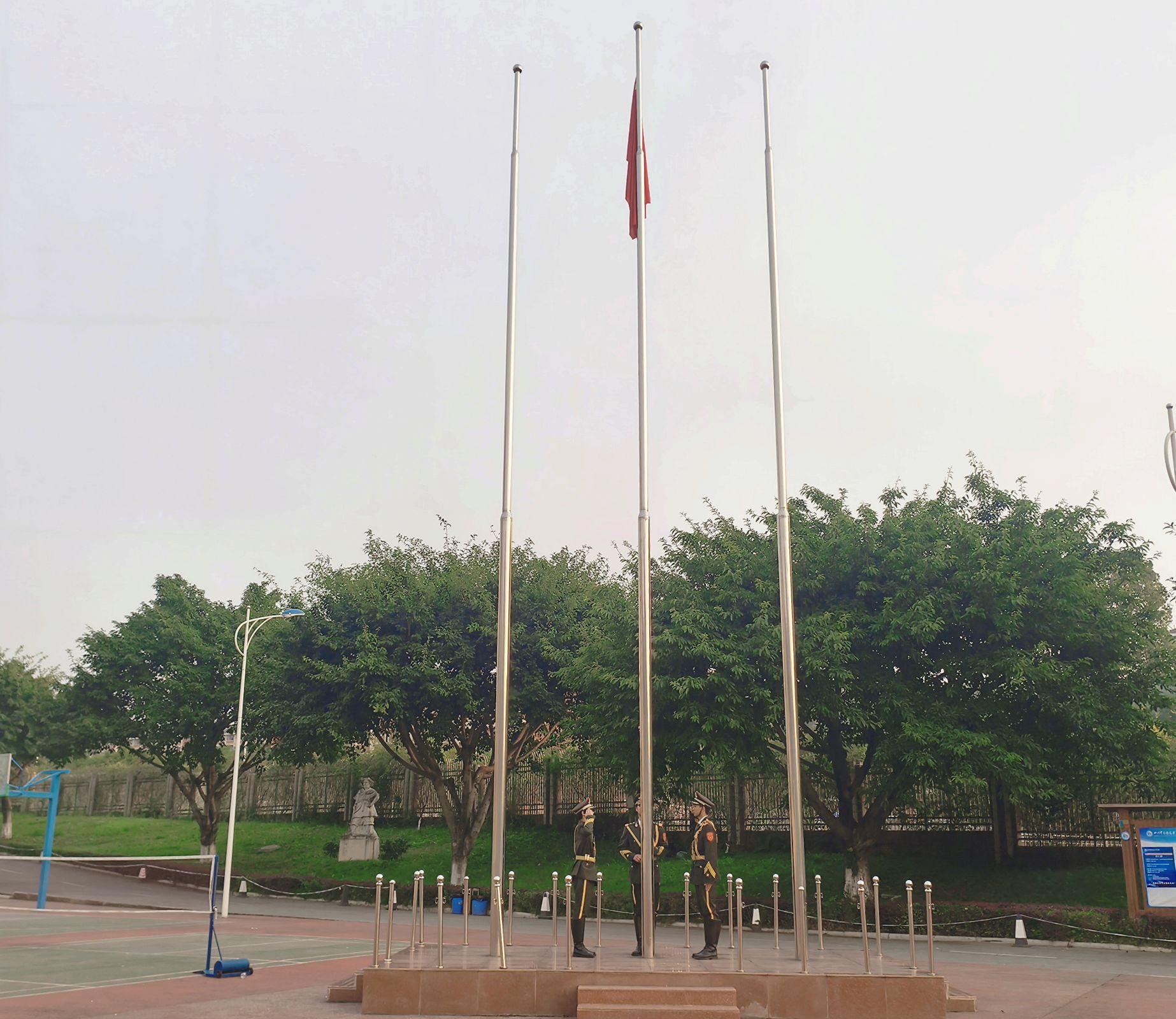 朝晖初现,微风轻拂,伴随着雄壮的《义勇军进行曲》,鲜艳的五星红旗冉冉升起,迎风飘扬。