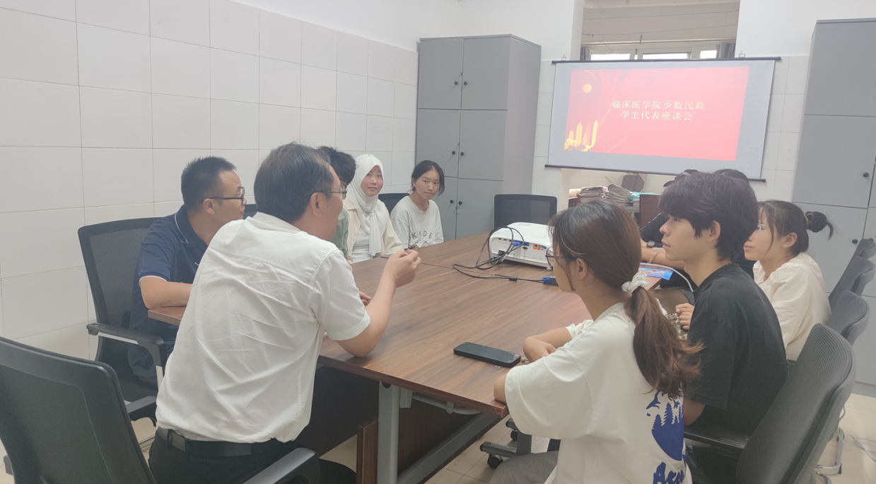为深入推进“三全育人”工作落地落实,提升管理服务育人实效,2025年9月9日,临床医学院在“一站式”学生社区组织召开少数民族学生代表座谈会。学院党总支书记、院长古仕明、副书记叶忠及各辅导员与来自不同年级的少数民族学生齐聚一堂,进行面对面深入交流。