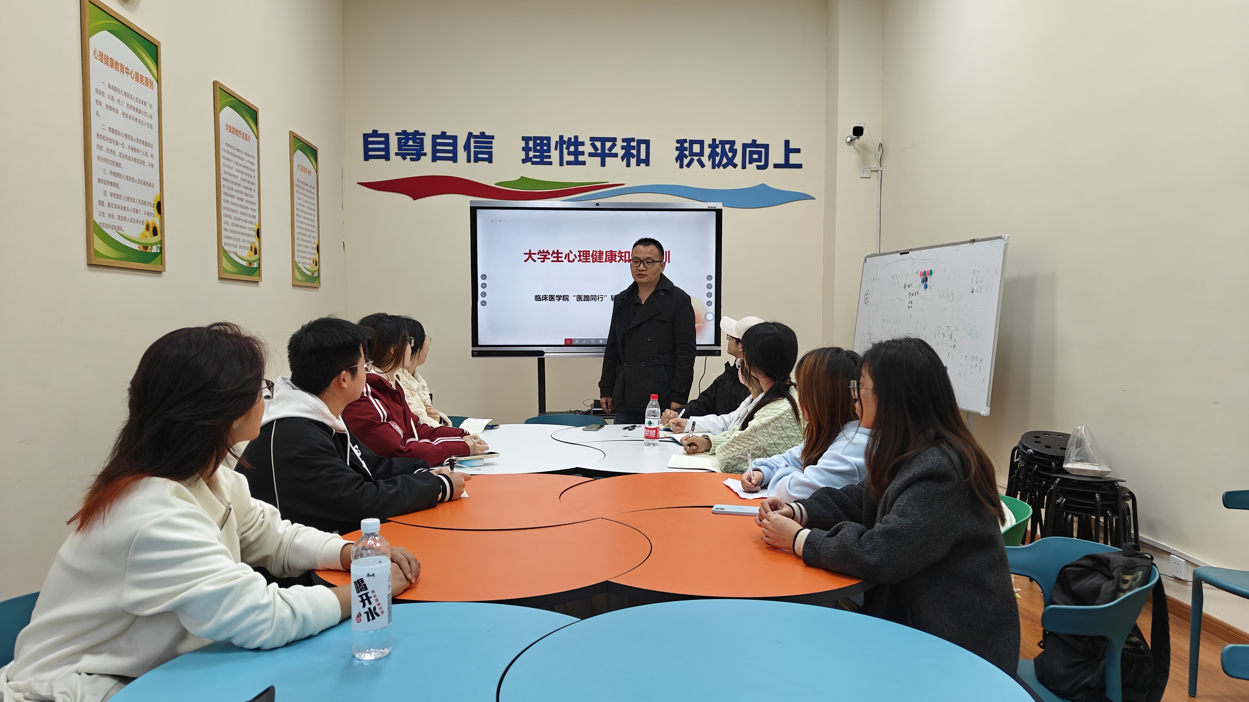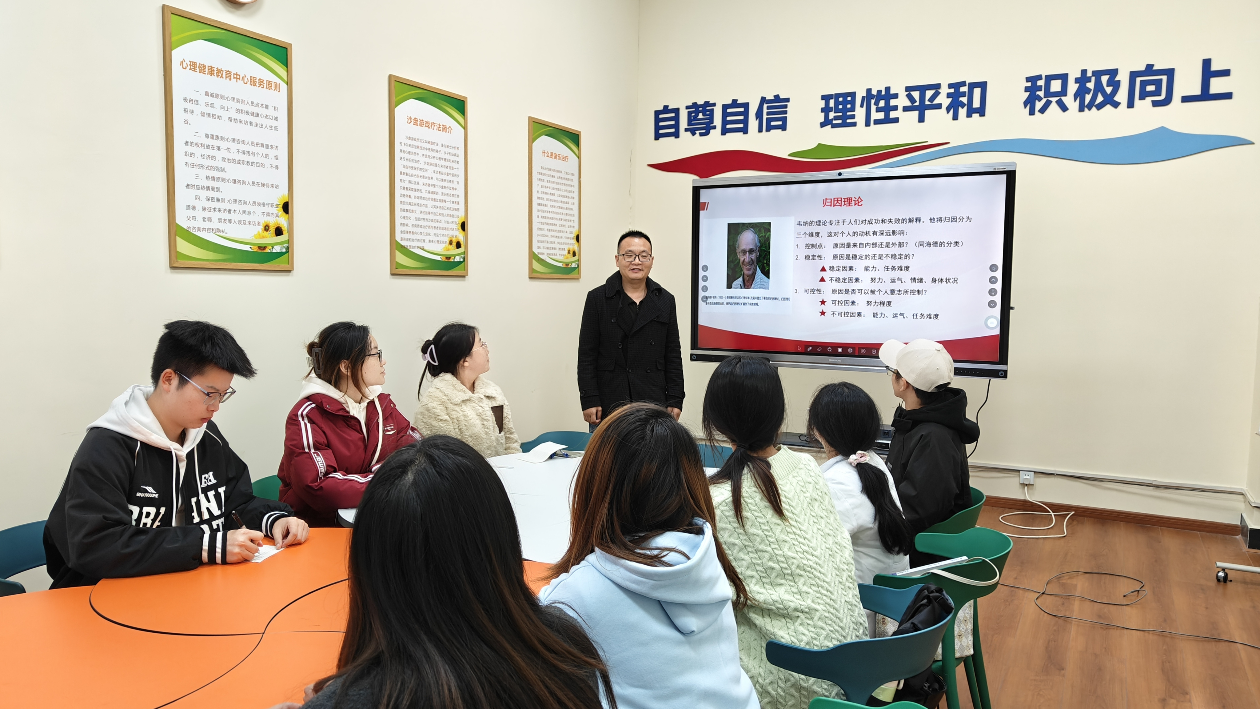 2025年11月12日,“医路同行”辅导员工室在一站式学生社区224心理团辅室举行大学生心理健康专题培训,将心理学“归因理论”融入现实场景分析,并就近期校级啦啦操比赛表现进行团队复盘反思。工作室成员与学生代表共同参与。