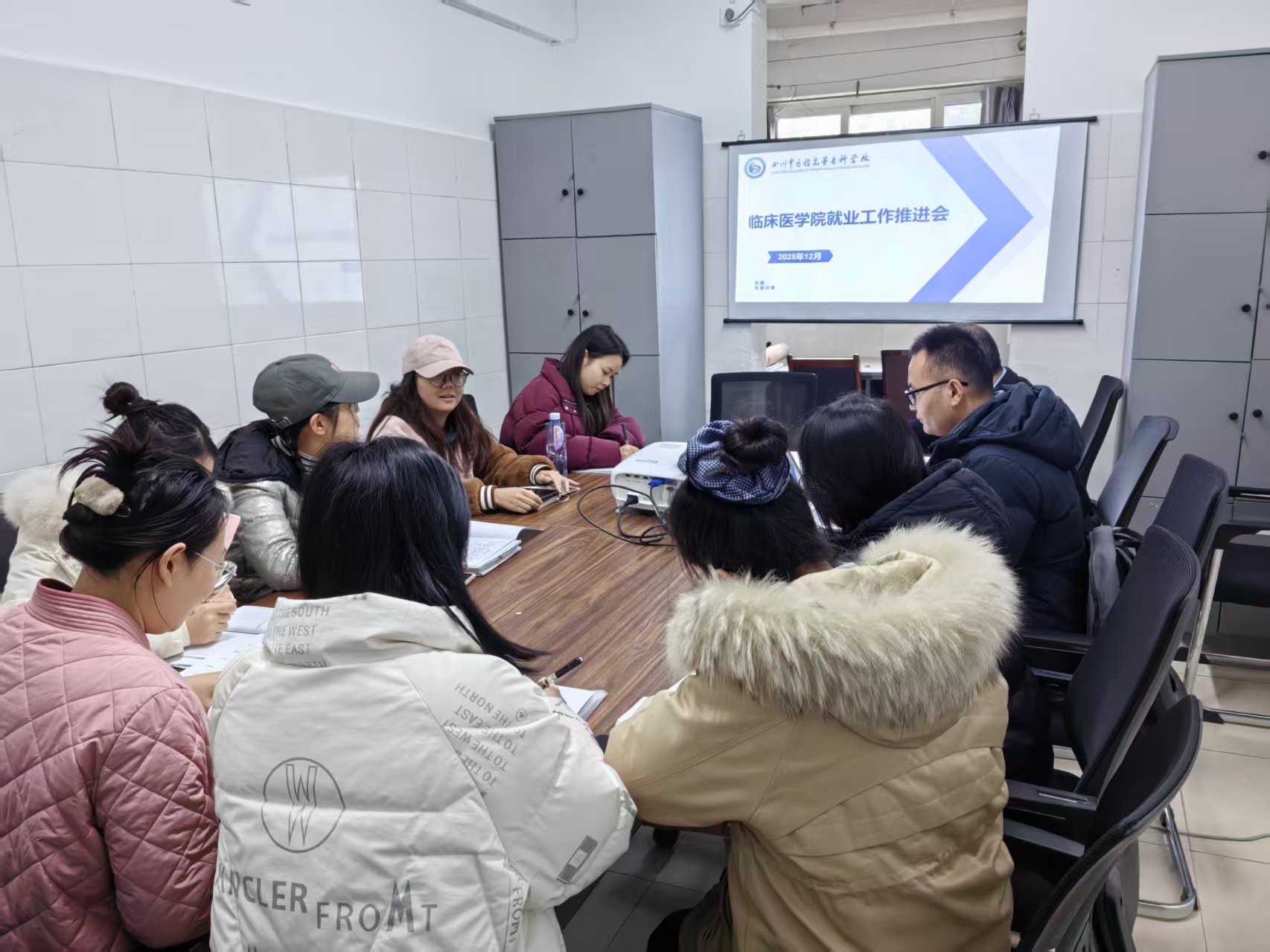 为积极应对当前就业形势,扎实推进2026届毕业生就业工作,12月29日上午,临床医学院在学院会议室组织召开了12月就业工作推进会。会议聚焦临床医学、口腔医学、预防医学三个专业毕业生的就业现状与未来趋势,进行专题研判与工作部署。学院全体管理干部、毕业年级辅导员参加了会议。