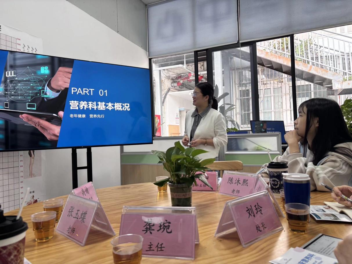 下午,团队前往成都老年康疗院开展访企拓岗与调研交流。在营养科王利仙主任、营养师高婧陪同下,团队听取了关于医院营养学科发展建设的介绍,并实地参观了营养科临床评估区、膳食制作中心等核心功能区域,直观了解老年营养服务的实际运作场景与个体化营养膳食管理软件平台。随后双方围绕实践基地共建、课程案例开发、学科建设发展等议题深入座谈,进一步打通了学校教学与行业需求的对接通道,为将一线行业经验精准融入医学营养专业教学搭建了务实平台。